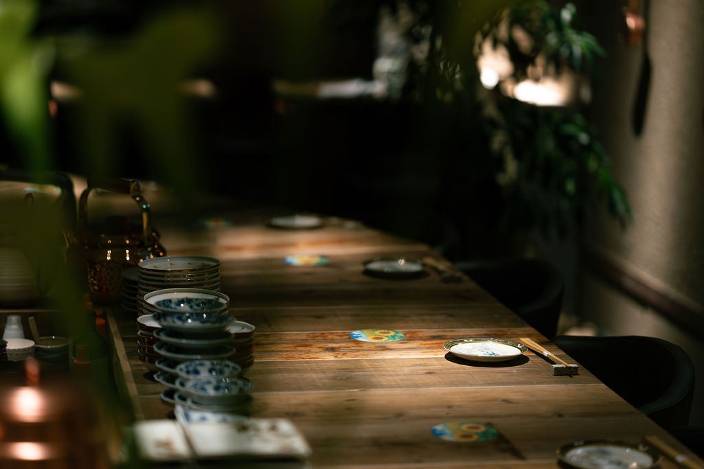 店内は、“都会の森”をコンセプトに設計された落ち着きのある和モダン空間。炭の香りがほんのりと漂うカウンター席に加え、個室・半個室のプライベート空間も完備し、あらゆるシーンに寄り添います。