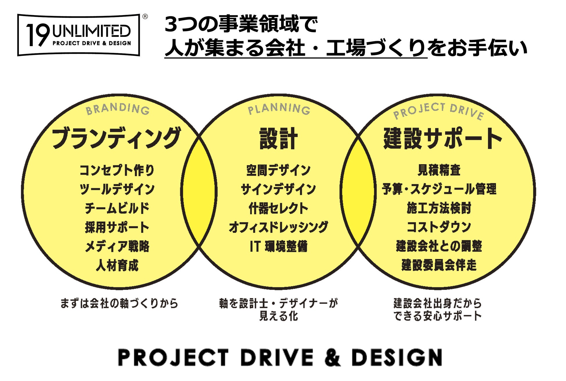岩手県盛岡市に本社を置き、全国でブランディングデザイン・設計・建設サポートの3つの事業領域で「人が集まる会社づくり」をワンストップでお手伝いしています。本社・オフィス設計、工場設計など建築を絡めたコーポレートブランディングを得意としており、地元岩手から沖縄、台湾まで全国・海外でプロジェクトが進行中。企業の可能性は無限大=アンリミテッドであると信じ、ブレない企業の軸(ジク=19)作りをしています。
