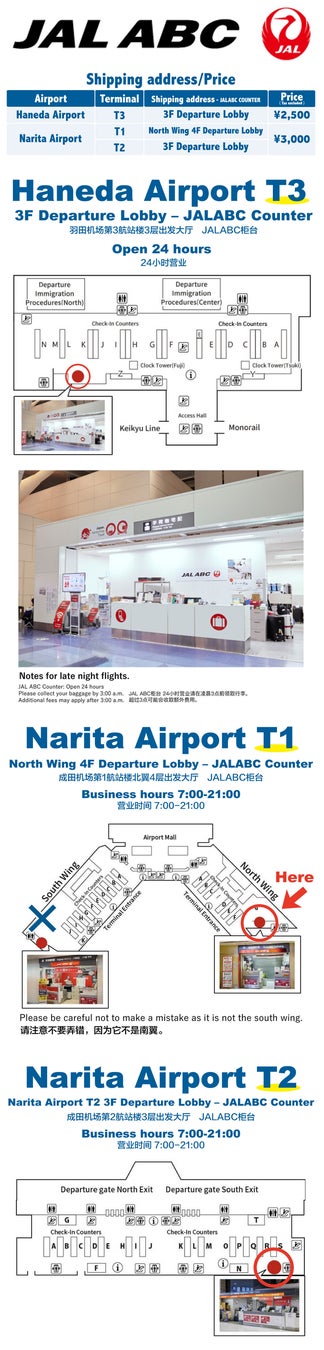 お送りしたお手荷物は、羽田空港・成田空港のJAL ABCカウンター窓口にてお受け取りいただけます。