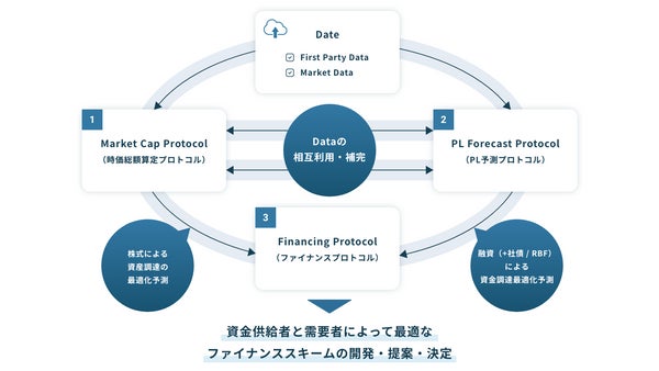 ENOLAは3つのProtocol(時価総額算定プロトコル、PL予測プロトコル、ファイナンスプロトコル)で構成されており、独自の分析方法・予測フレームワーク・データ集計のためのソフトウェアやツールを保有しています。専門チームは起業、ベンチャーキャピタル、データサイエンス、投資銀行、会計・財務等のキャリアバックグラウンドをもつ複数人から構成されております。