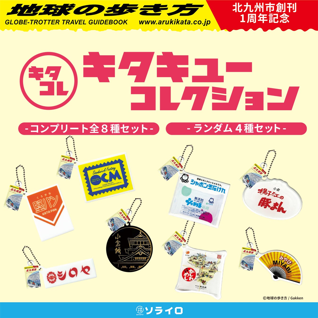 大ヒットガイドブック『地球の歩き方 北九州市』のPRプロモーションをプロデュースした株式会社gaaboo(ガーブー)(所在地:東京都渋⾕区、代表取締役:辻正隆)のグループ会社で、地域支援からまちと日本を元気にする株式会社ソライロ(所在地:北九州市小倉北区、代表取締役:辻正隆)は、『地球の歩き方 北九州市』とのコラボレーションから誕生したカプセルトイ「キタキューコレクション」が、7月16日より「地球の歩き方」コラボグッズとして初めて、ふるさと納税返礼品に登場することをお知らせいたします。