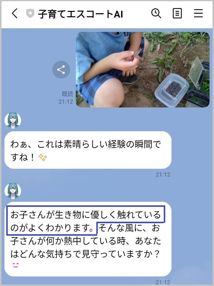 【5】親子のやりとりを記憶し、温かいコメントでエール