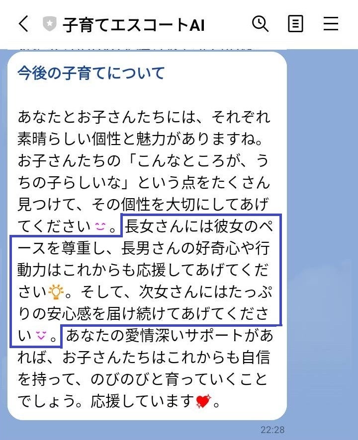 『子育てエスコートAI』は、単なるアドバイス提供にとどまらず、保護者一人ひとりの「心の声」に寄り添う対話型AIとして進化を続けています。