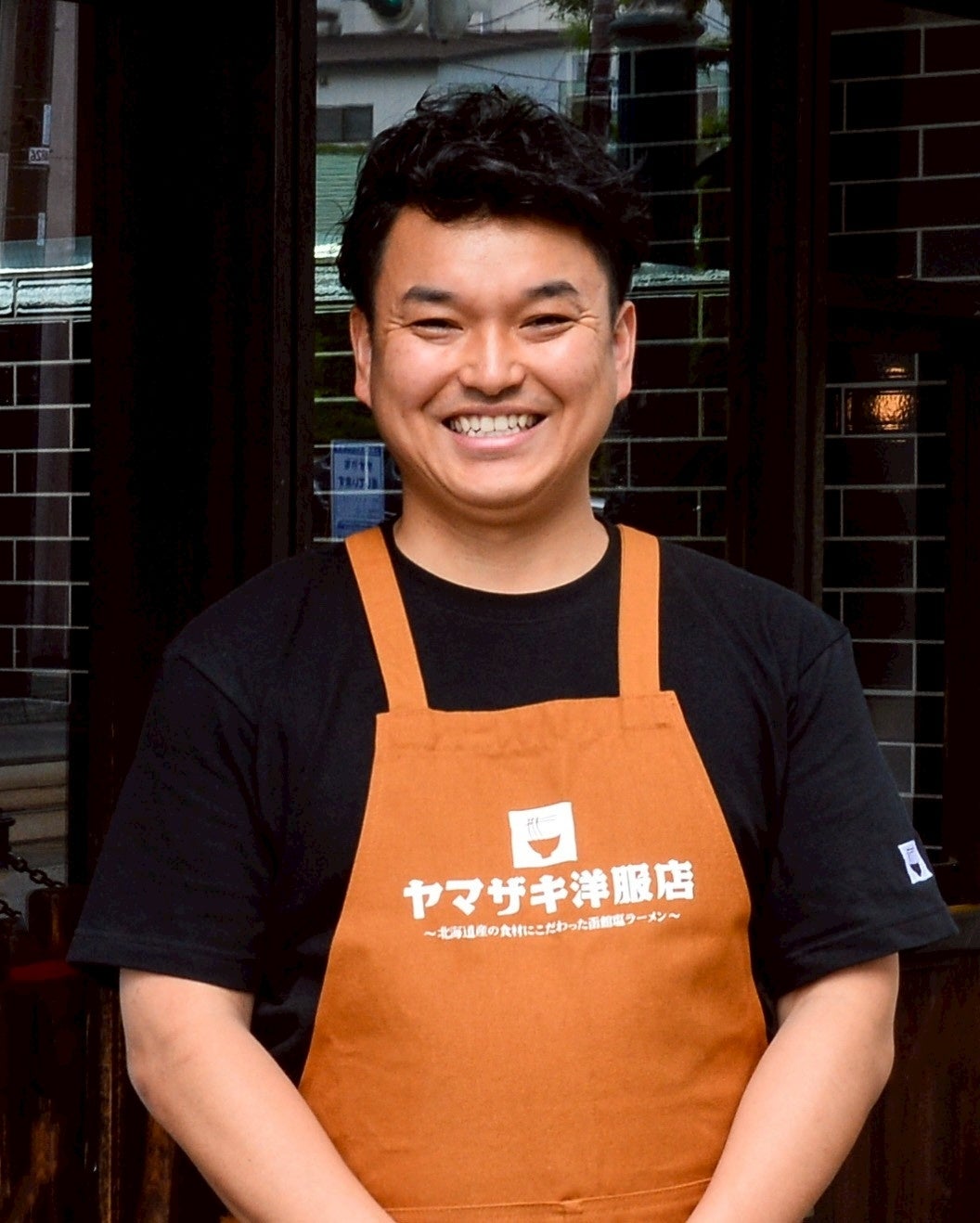 帯広で生まれ、22歳から15年間競輪選手として函館を中心に活動し、レースで全国を飛び回っていました。様々な土地を訪れる中で、それぞれの土地の魅力を活かしたご当地ラーメンの魅力に取りつかれました!父がフレンチのシェフでしたので、子どもの頃から料理には関心があり、選手として10年目の節目で函館にラーメン店をオープン。5年間2足の草鞋で経験を積んできました。そしてこの度、15年間続けてきた競輪選手を引退し、今まで叶えたかった地域の魅力を活かした「函館塩ラーメン」をオープンすることができました!ラーメンも店内もこだわりが詰まっています。1人でも多くの方に私達ヤマザキ洋服店の函館塩ラーメンを味わっていただき、この歴史ある街並みに、のれんをかけ続けて行きたいと思います。
