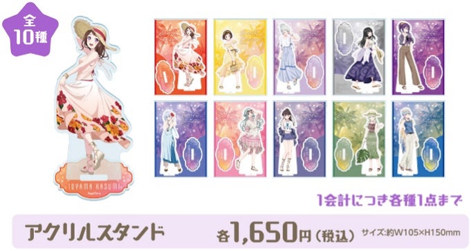 入場特典ポストカードなど限定ノベルティ3種を展開。キャラクターたちと一緒にバカンス気分が味わえる等身大パネルとの記念撮影も。