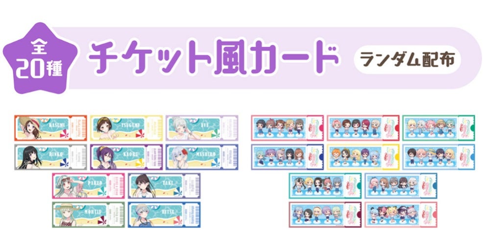 コラボグッズのお会計2,000円(税込)毎に、「チケット風カード全20種)」をランダムで1枚差し上げます。