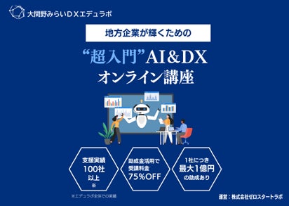 株式会社ゼロスタートラボ(埼玉県越谷市)は、Innovation Hub株式会社(東京都港区)と連携し、DX(デジタルトランスフォーメーション)およびAI研修サービス「大間野みらいDXエデュラボ」を開始いたします。まずは自社グループ企業向けに研修を提供し、その成果を基に、より広く地域企業や全国企業に向けてサービスを拡大していく予定です。