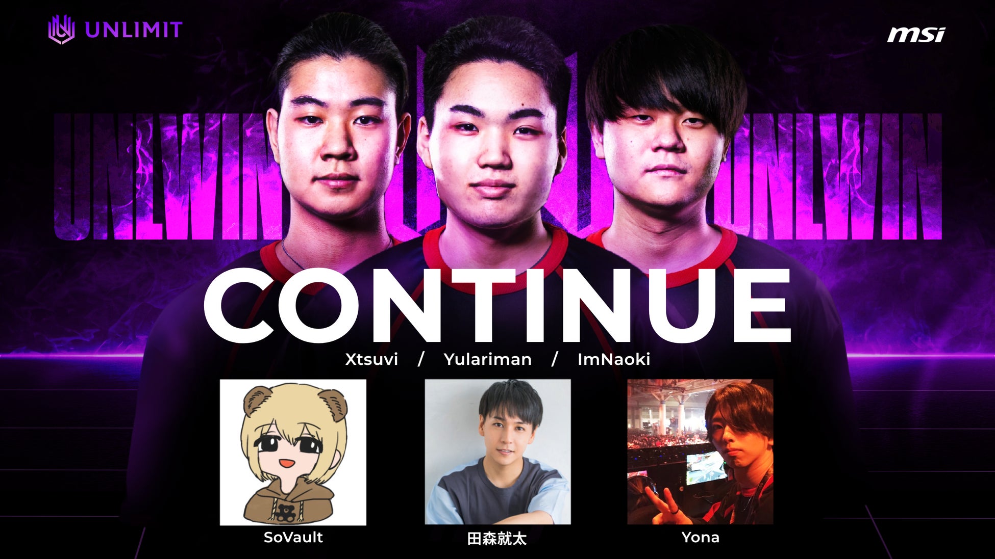 Apex Legendsプロ部門で活躍する「Xtsuvi」「Yulariman」「ImNaoki」「Yona」及びストリーマー部門「SoValt」(ソバルト)「田森就太」は新生「UNLIMIT」でも継続して活動していきます。特にApex Legendsプロ部門のメンバーは、現在「ALGS」(Apex Legends Global Series Year 5:Spilit 1)総合4位、6月15日に行われる「ALGS Regional Finals」で世界の切符を賭けて戦います。新しいCOREメンバーと共に更なる飛躍が期待される既存メンバーの活躍にも注目ください!