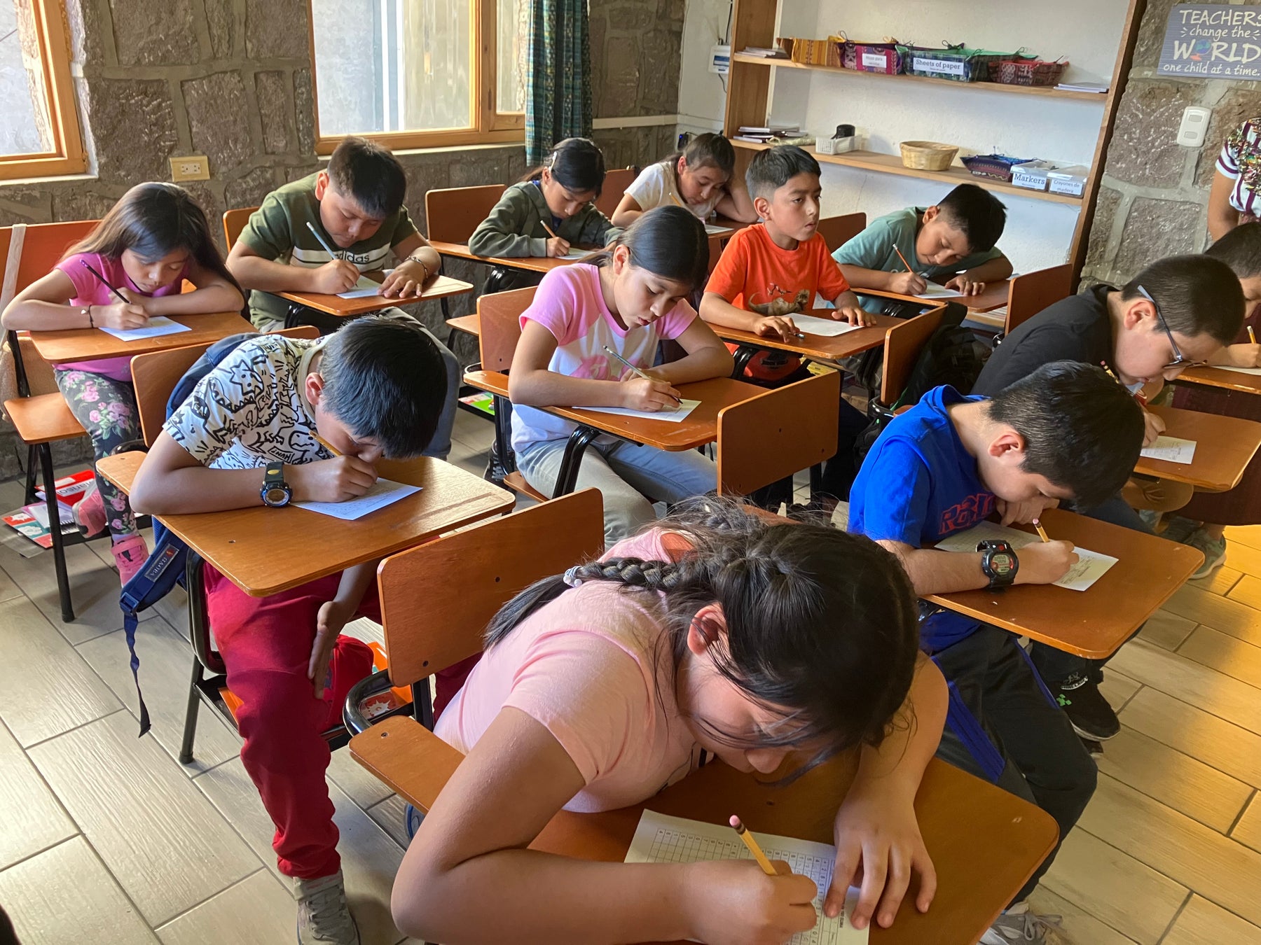 算数、スペイン語、英語、音楽、図画工作、リーダーシップ教育などを指導し、音楽では寄付いただいたピアニカやリコーダー、図工では折り紙教室も取り入れています。