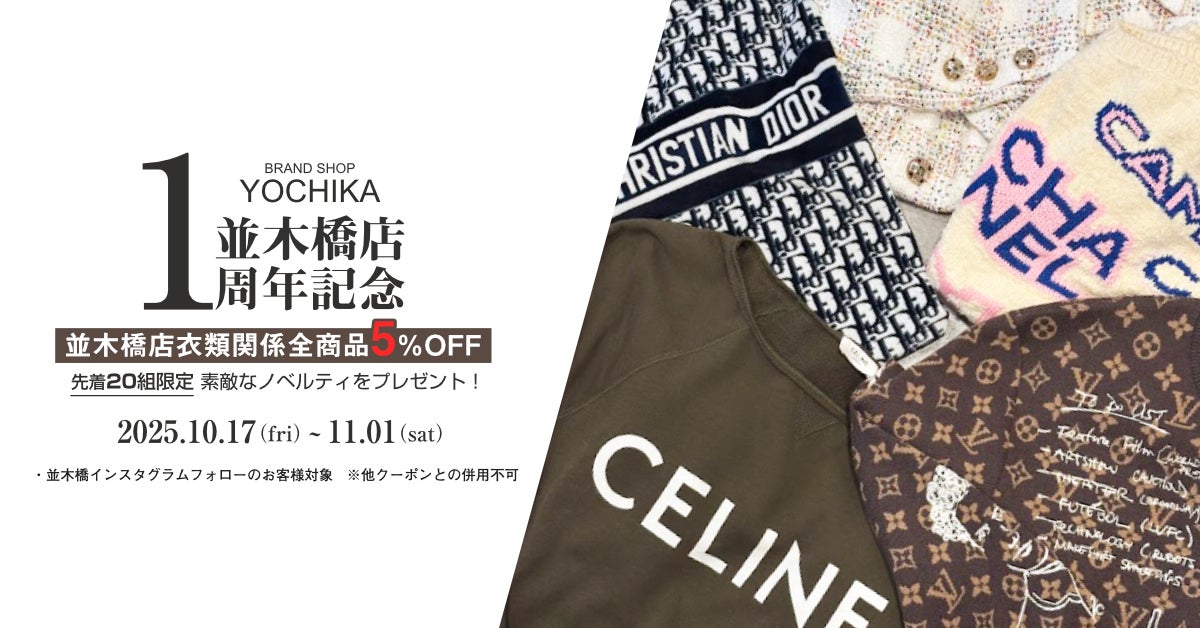 この流れを受け、ハイブランドショップ「よちか(YOCHIKA)」は、渋谷並木橋店の開店1周年を記念して10月17日(金)から2週間、同店で記念キャンペーンを実施します。