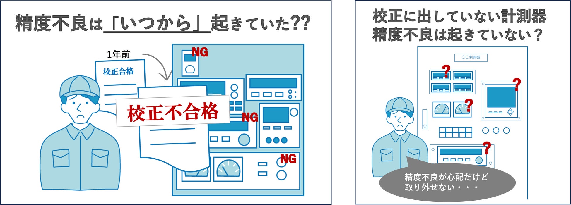 製造現場において、製品の品質保証に不可欠な計測器。その正確性の確認には、年に一度などの定期的な校正を行うのが一般的です。しかし、この定期校正から次の校正までの期間に計測器が精度不良や異常を起こした場合、ユーザーがそれに気付くことは極めて困難です。