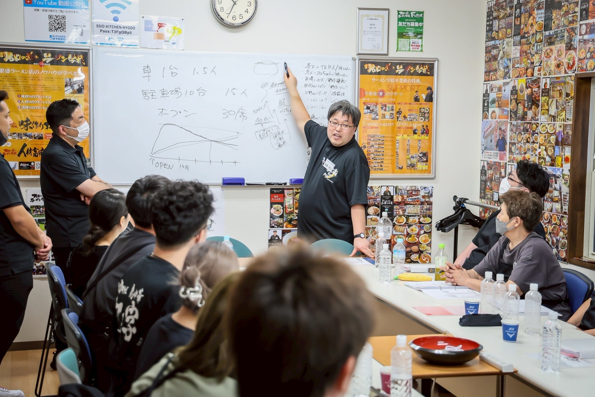 ラーメンの味作りだけを学んでも、ブランド作りや集客力ある店舗作り、正しい業態別の収益構造を理解し、店舗人材教育やオペレーション作りをしないと、行列しているのに利益が出ない。沢山のお客様に来て頂いているのに利益が出ない。美味しいものを作っているのに、お客様が来ない。といった状況に陥り、やがて倒産してしまうというケースを沢山目にしてきました。これ以上、そういった人を増やしてはいけない。ラーメンを食べて頂いたお客様に喜んで頂き、店主、経営者自身も成功する。そんな人を1人でも増やそうと、そうした想いで毎回、開校しています。これから開業する方は勿論、現状、苦戦し悩まれている方、新たに店舗展開や海外展開される方などラーメンの味作りだけではなく、経営、販促、何よりも人との繋がりを体感して頂き、皆様の今後の人生に少しでも、お役に立てれば幸いです。