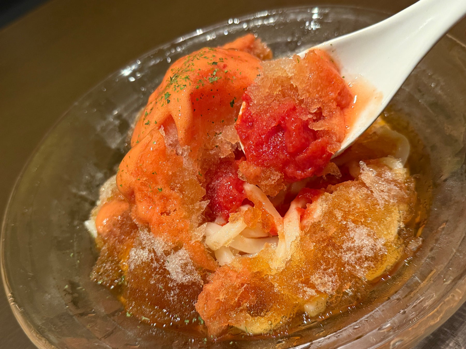 商品名:出汁かき氷ぶっかけうどん ~トマトエスプーマ~