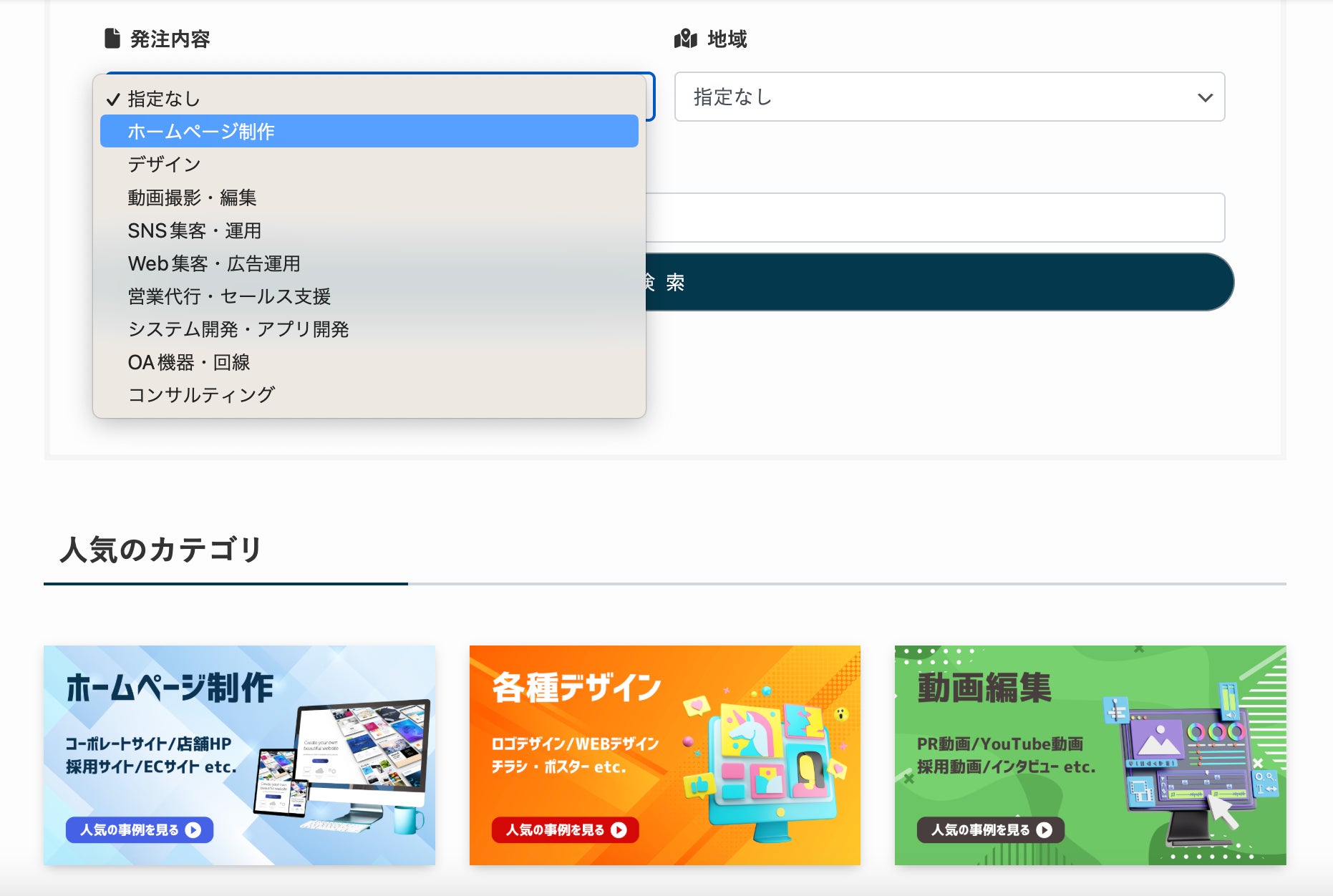 掲載カテゴリ:全10カテゴリ以上(ホームページ制作、動画編集、SNS運用など)