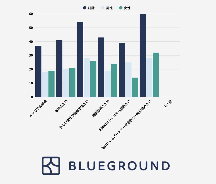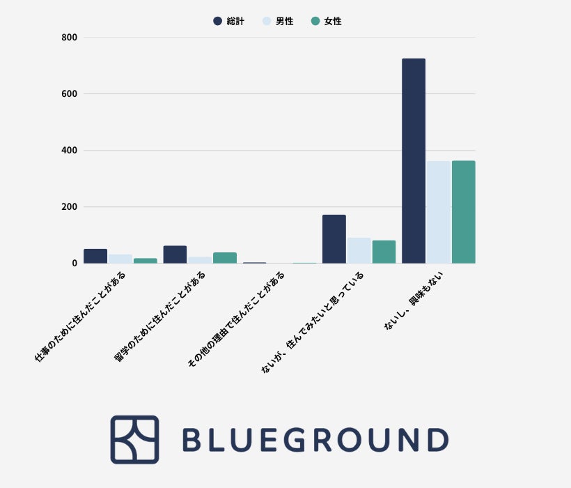 本調査は、世界30都市以上で家具付き・即入居可能な中長期滞在用アパートメントを提供するBluegroundの依頼により実施されたものです。将来的に海外生活を検討している日本人のニーズを、より深く理解することを目的としています。