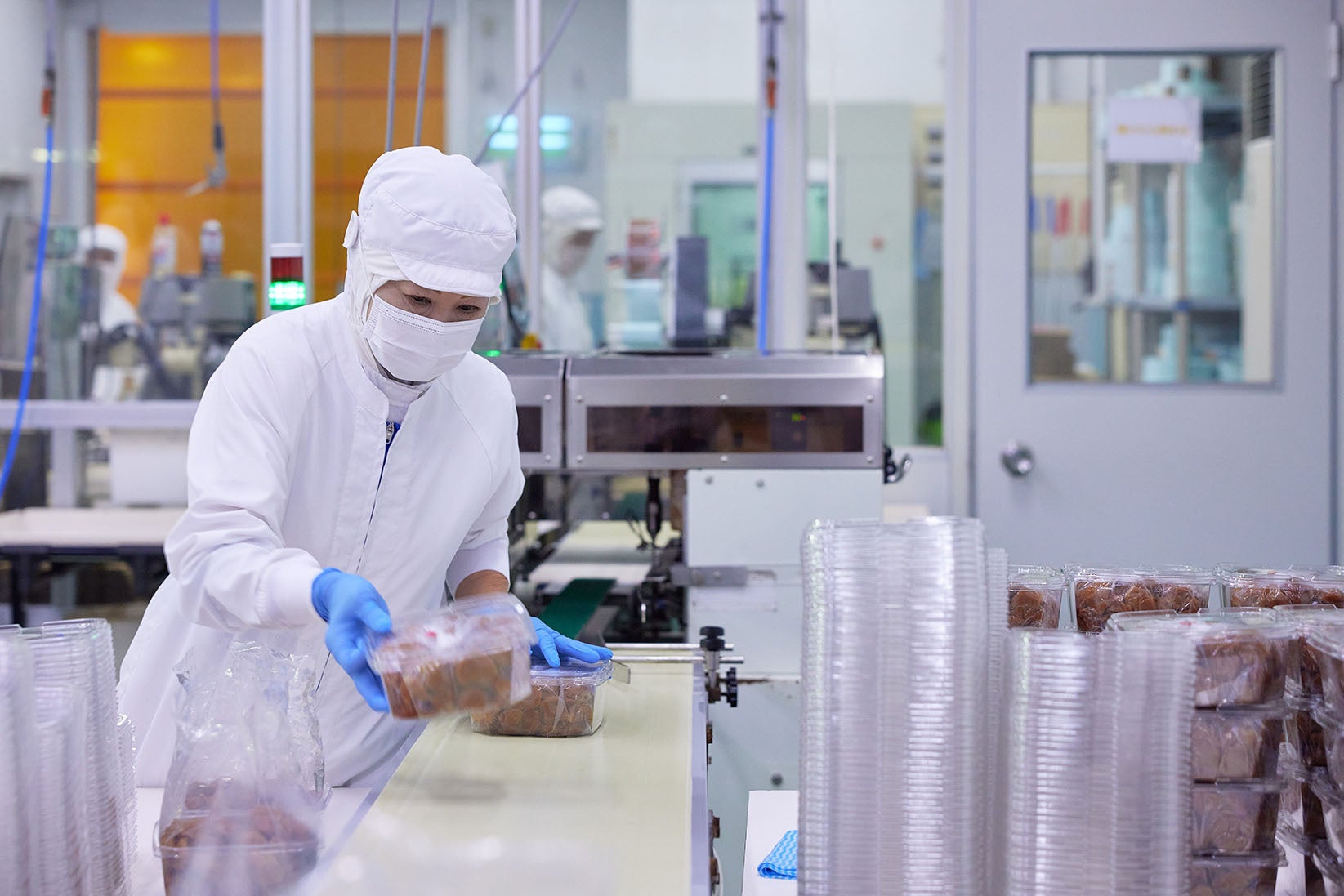 工場では年間を通じて梅干しの生産を行っており、1日あたり3~5トン、15,000パック(繁忙期には20,000パック)を製造しています。