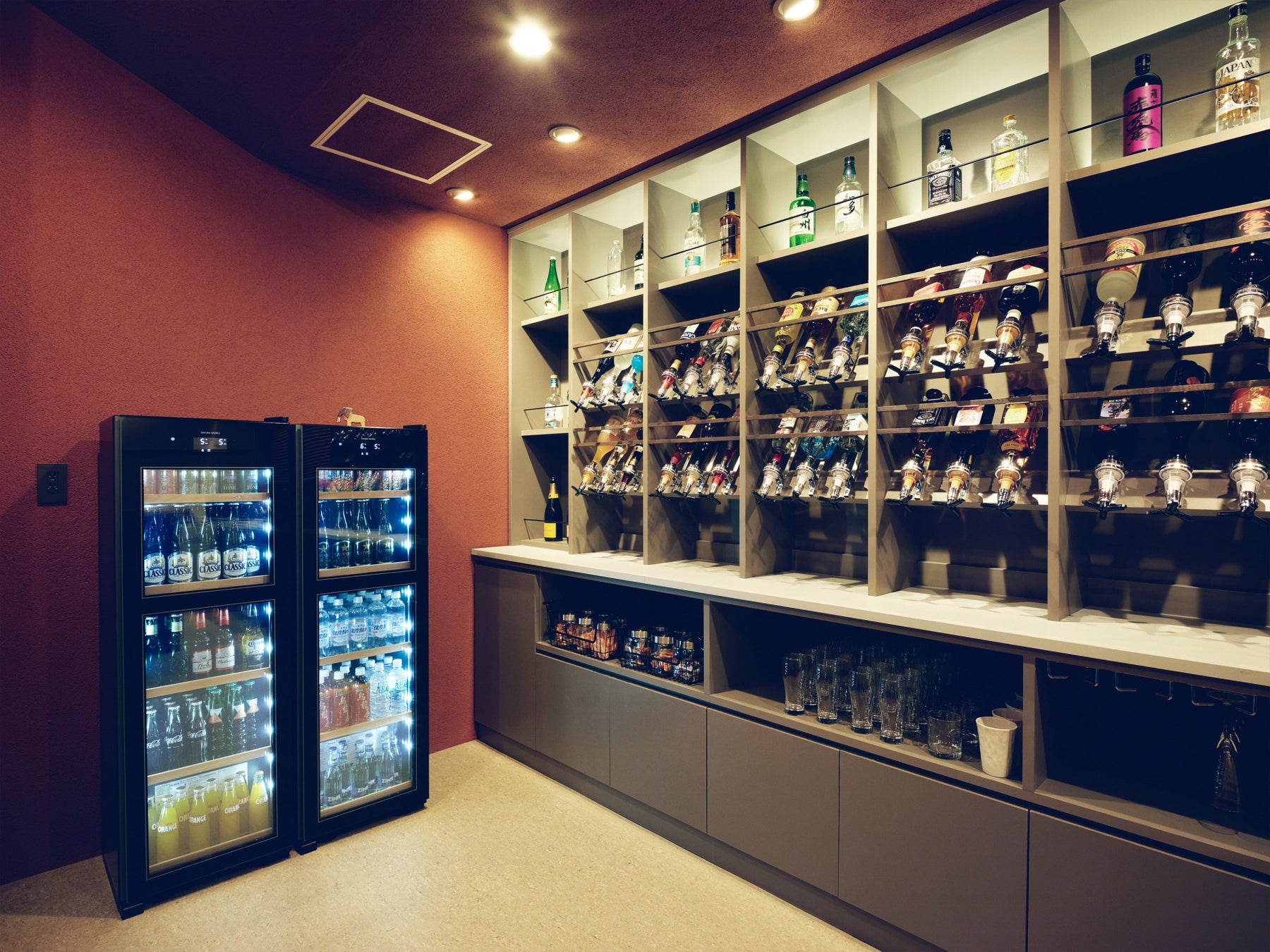 また、酒販業を営む株式会社五明ならではのノウハウを活かし、60種類以上のアルコール・ソフトドリンクを自由に楽しめる"ドリンクインクルーシブ"サービスを導入。北海道産の日本酒からさまざまなアルコール、ソフトドリンクをご用意しています。ご宿泊のお客様はこちら全てご自由にお飲みいただくことが可能です。