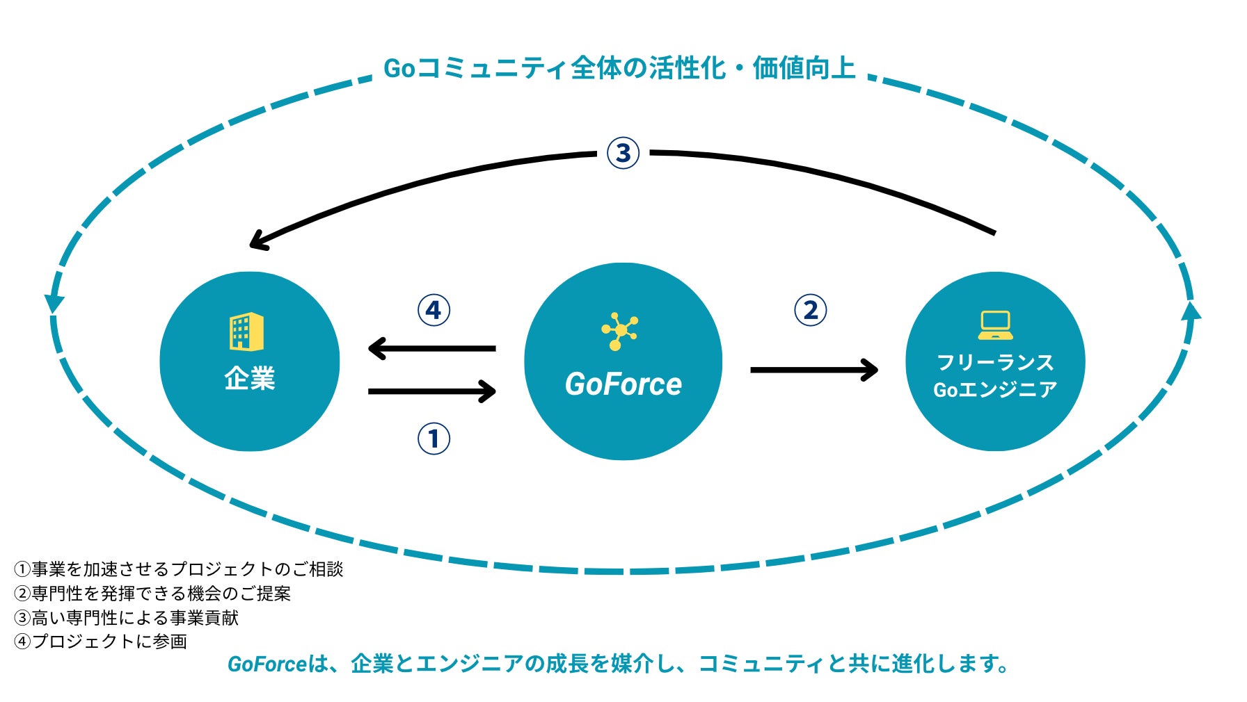 GoForceは、Goエンジニア専門フリーランスエージェントです。希少なGoエンジニアのリソースを、最も必要としている企業へ迅速かつ柔軟に提供し、日本の技術革新と事業成長に貢献します。