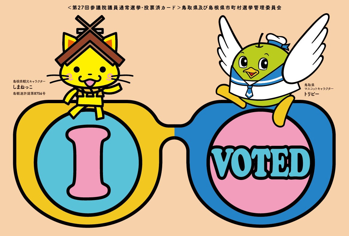 ●カードの特徴:“パーティーグラス風”デザインの投票済カード、鳥取県・島根県キャラクター入り