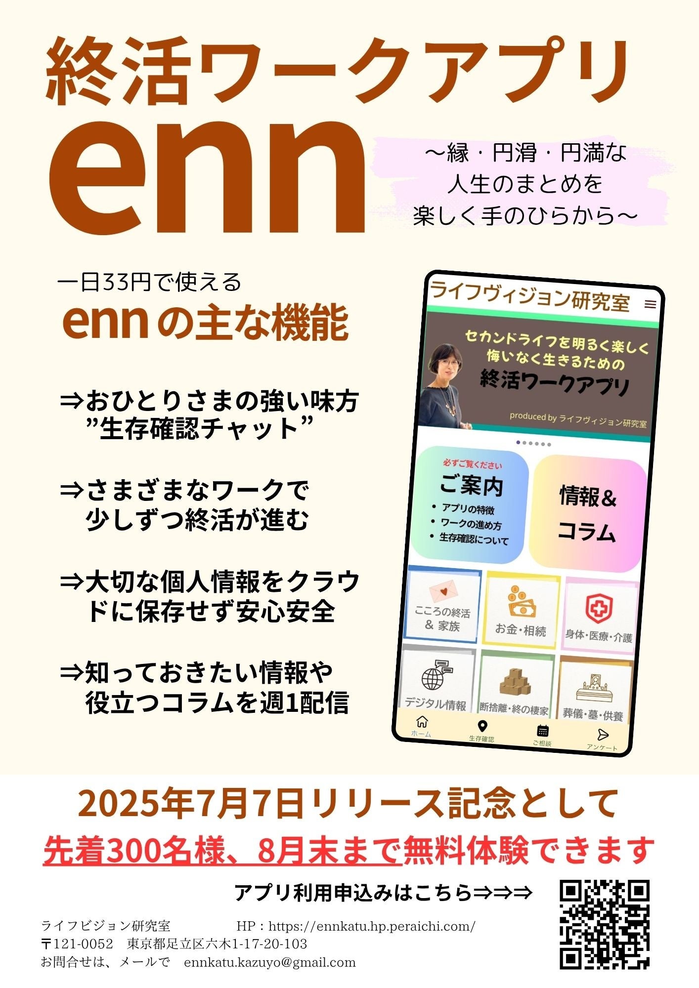 ■ サービス名:終活ワークアプリ「enn(えん)」