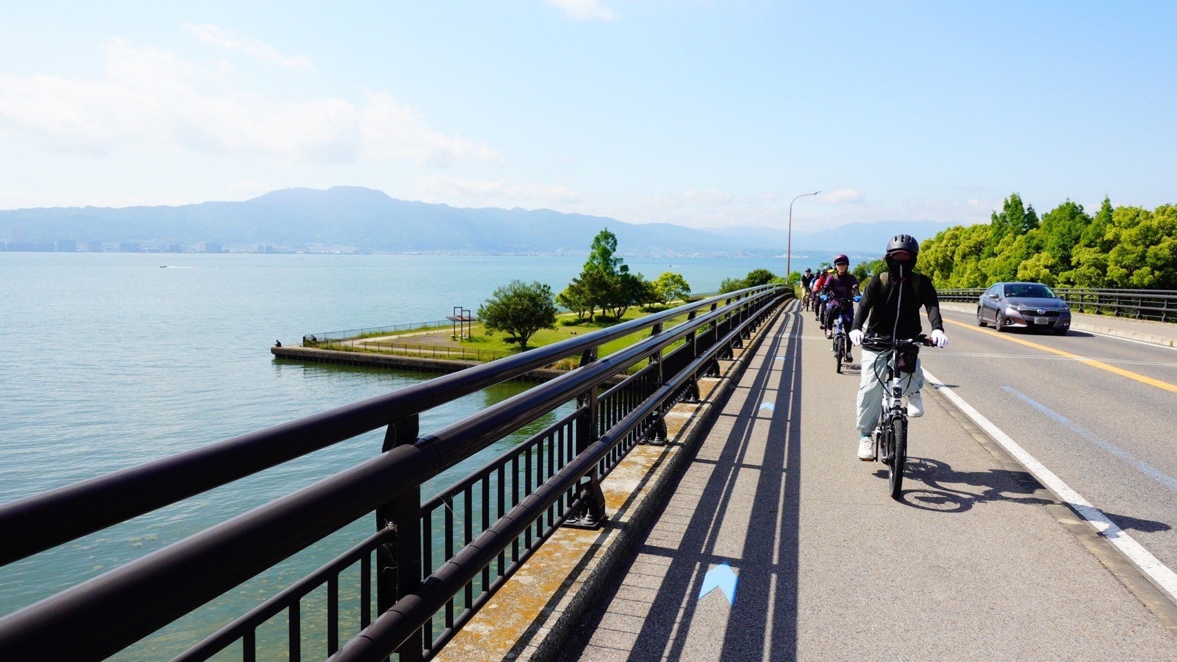 もちろん安全面こそガイドの最も大切な役割。エリアの交通事情をよく理解し、安全第一でエスコート。また参加者の体力に合わせたスピードで無理せずビワイチ完走を目指します。