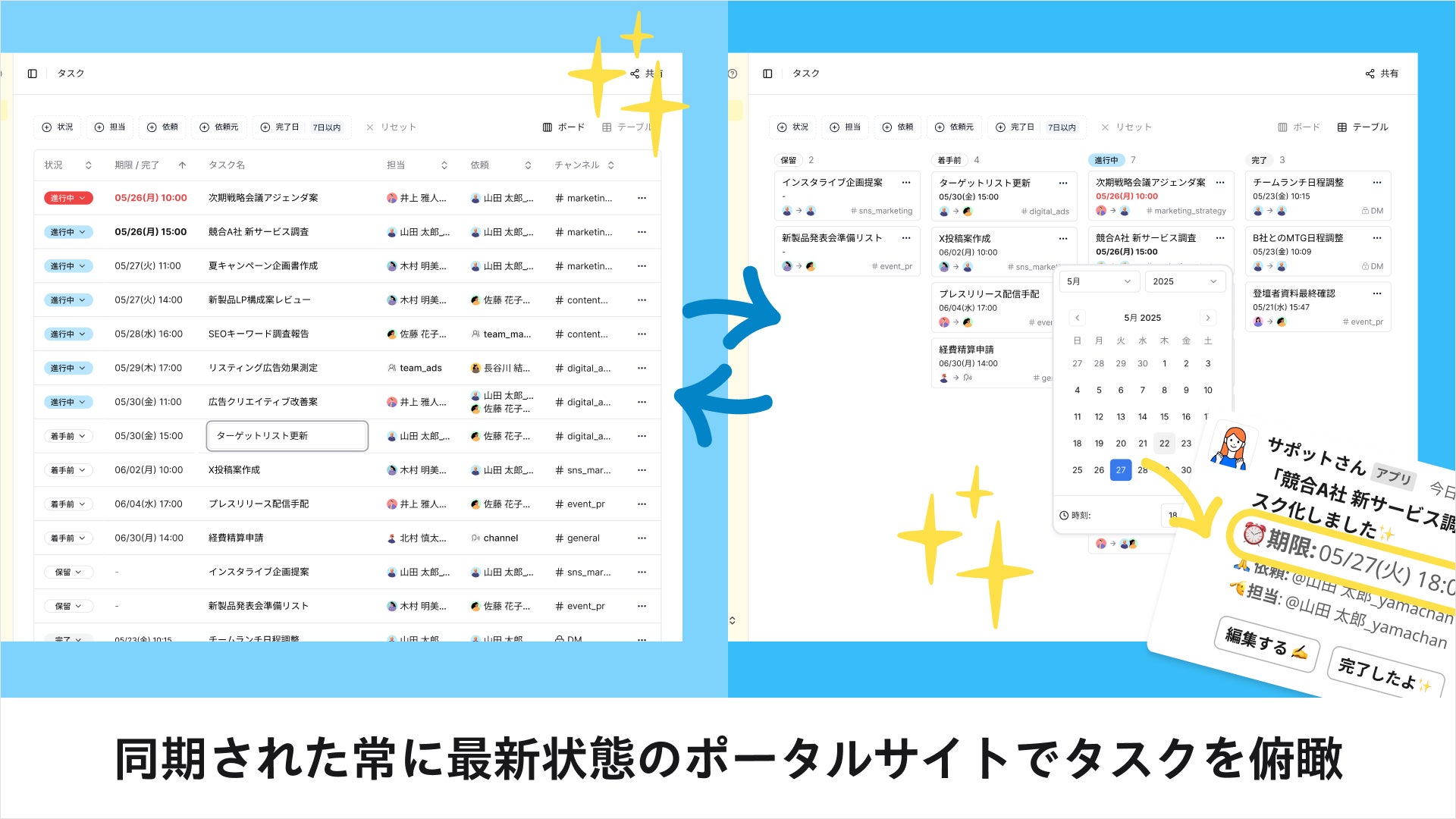 ポータルサイトではチームメンバーの依頼/担当タスクも俯瞰して確認可能。