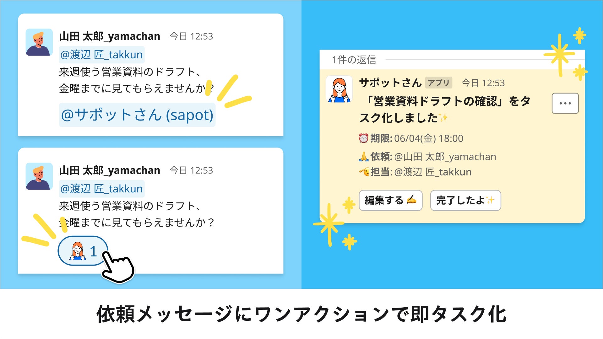 Slackの依頼をワンリアクションでAIが即タスク化、期限確認やリマインドも自動化