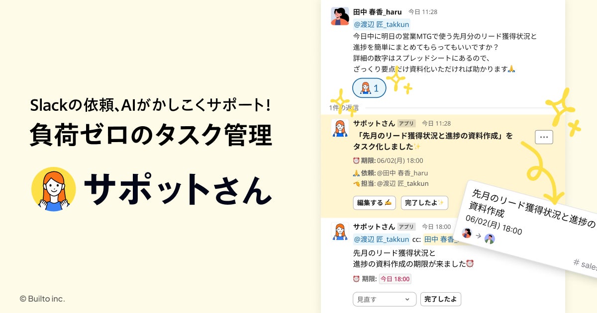Slack連携AIタスク管理『サポットさん』正式版リリース ── 業務の約60%占める「仕事のための仕事 (調整業務)」の削減に着手