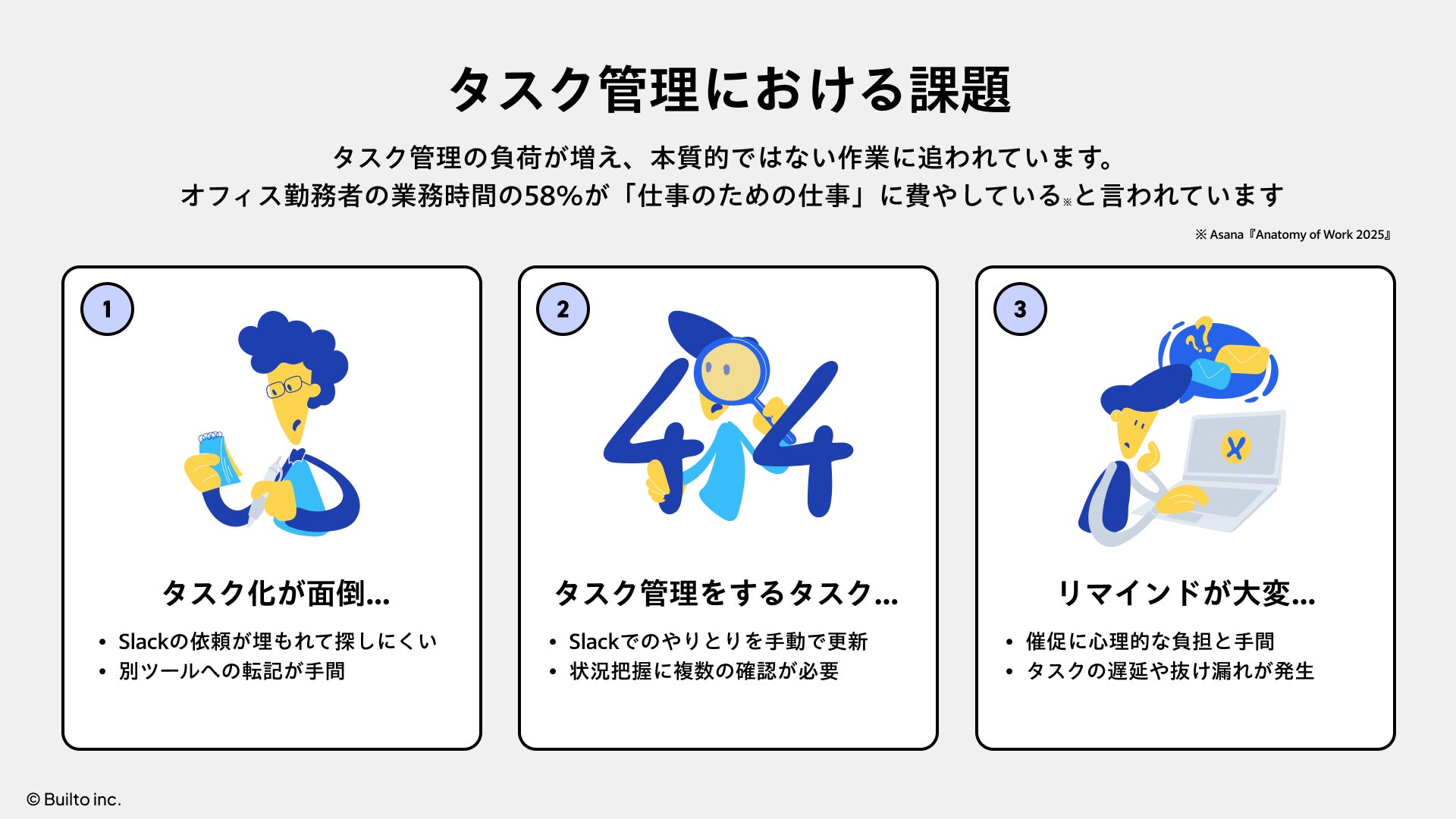 Slackやメールでの依頼がタスク管理ツールに反映されず「言いっぱなし」になる
