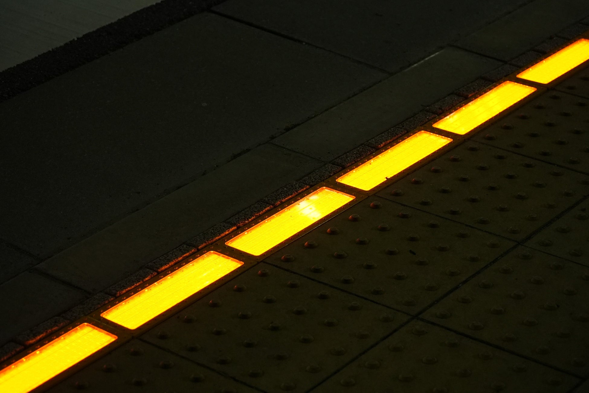 この信号は従来の「縦型」「吊り下げ型」とは異なり、地面に埋め込まれたLEDラインが黄色で点灯し、歩行者に注意を促す、全く新しいスタイルです。交通信号機の補助的な役割を担い、子供や高齢者など目線が下向きな交通弱者に対して有効な次世代型ソリューションです。