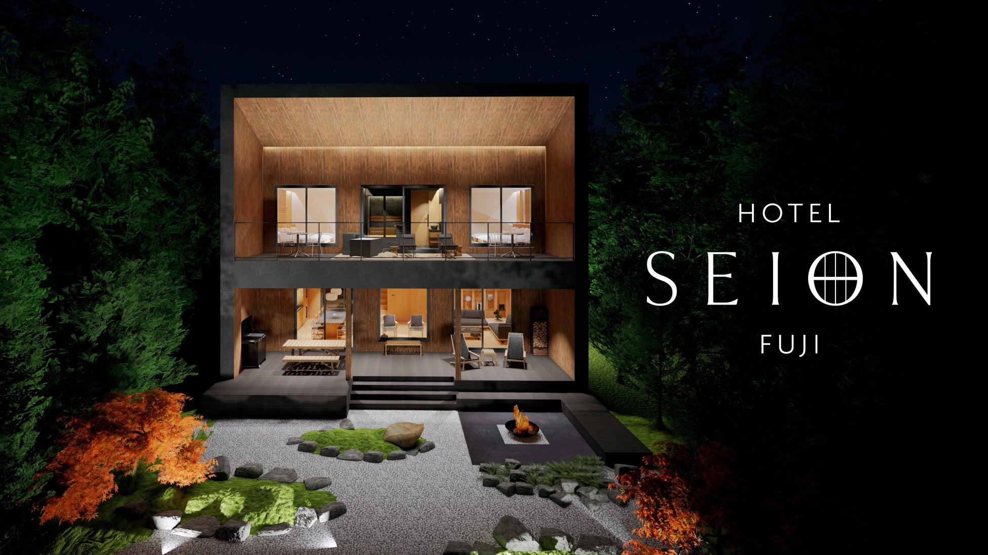 株式会社SEION(本社:山梨県南都留郡山中湖村、以下「SEION」)は2025年冬、1日1組限定のプライベートリゾートホテル「HOTEL SEION FUJI(ホテル セイオン フジ)」を山中湖村(山梨県)にオープンいたします。