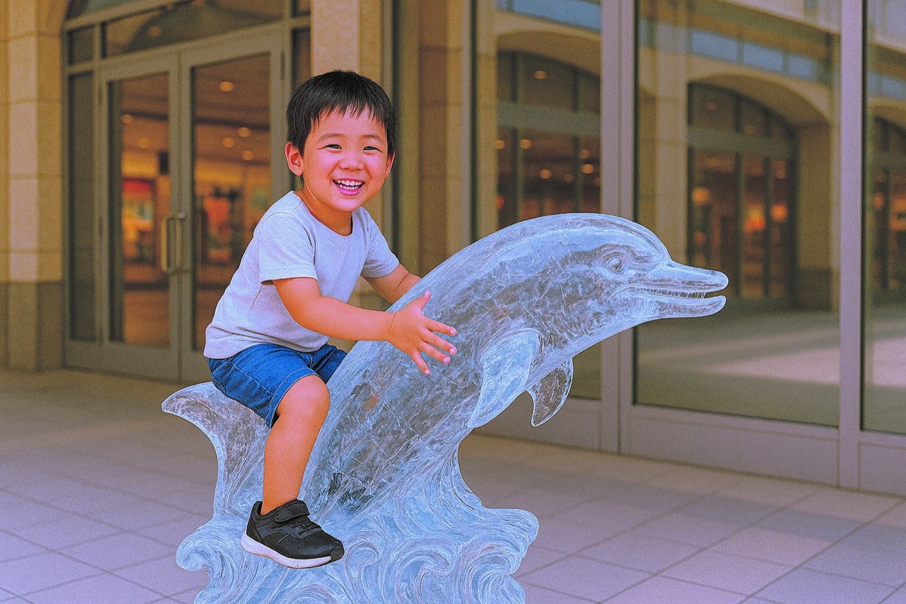 熟練の氷職人による、イルカやカメなど海の生き物の氷の彫刻パフォーマンスを実施します。完成した氷の彫刻は、子どもが実際に乗って写真撮影をお楽しみいただけます。