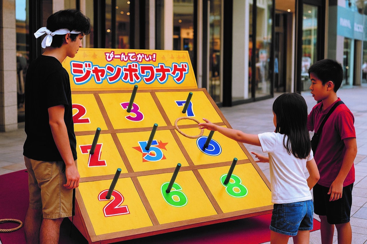 ジャンボわなげ:大きな的を狙う、ジャンボサイズのわなげゲームです。