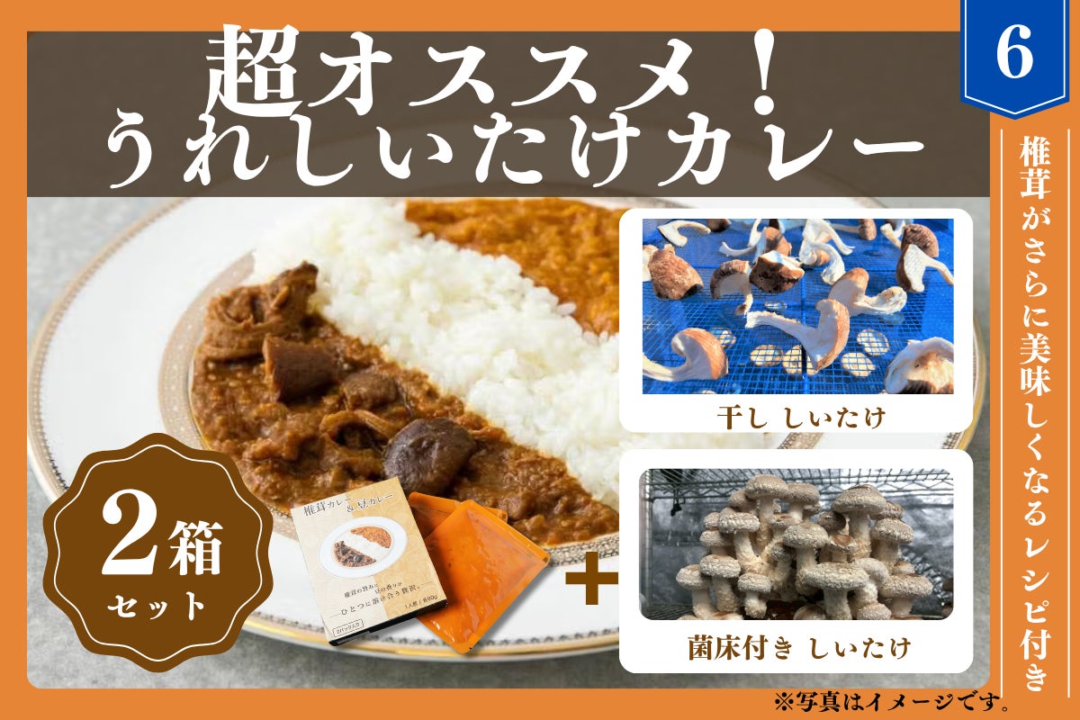 【6】超おすすめ!【カレー2箱4袋入+菌床付きしいたけ+干ししいたけ】