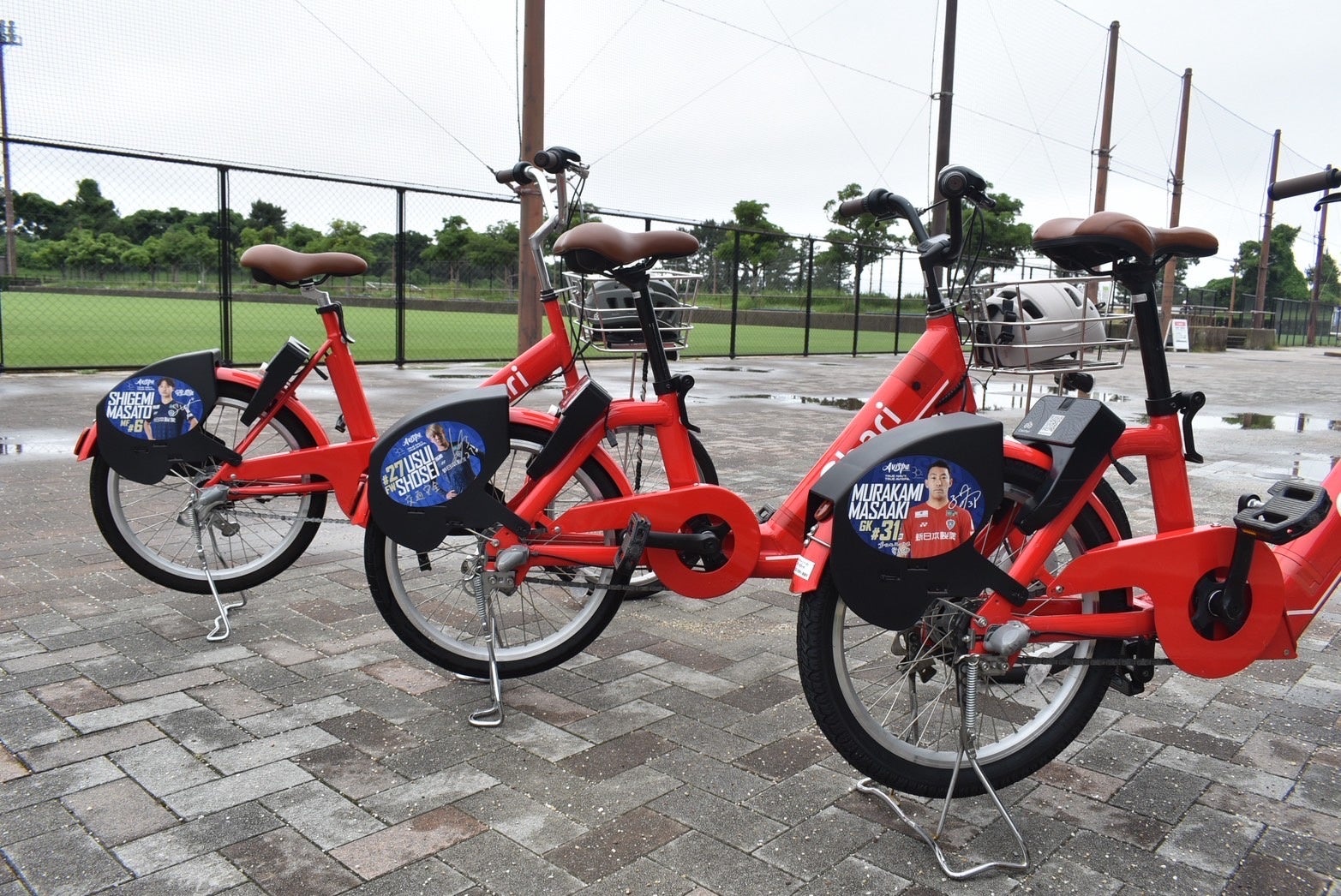 今回使用するチャリチャリ株式会社の自転車は、先日お披露目されたアビスパコラボチャリチャリ!
