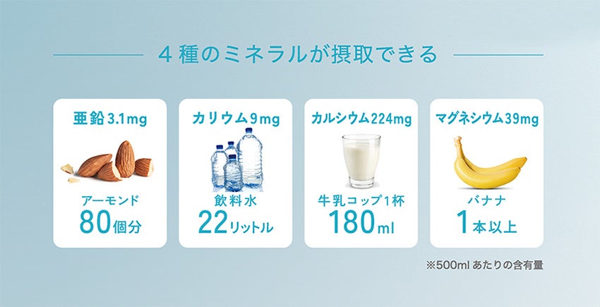 体づくりや健康維持に不可欠な、以下の4種類のミネラルを豊富に含んでいます。