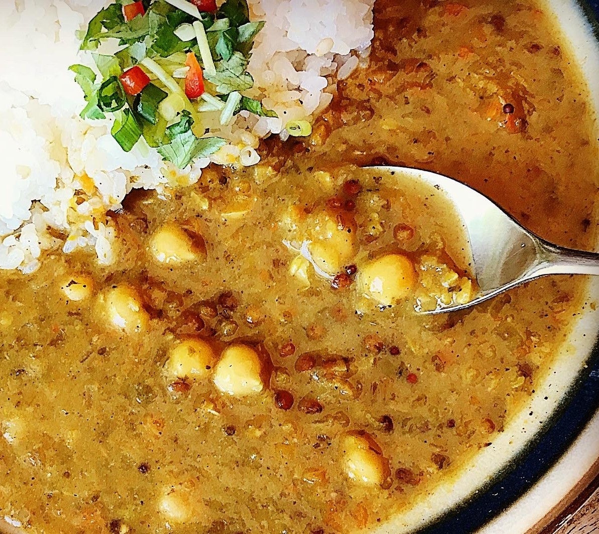 「金澤ななほしカレー」では、オープン当初から「誰もが食べられる」ことを大切にしています。子供から胃腸の弱い年配の方まで安心して召し上がれるよう、辛さは控えめに、低脂肪・低カロリーで消化が良いカレーを提供してきました。当店の定番である豆カレーは、五葷(※ごくん:にんにく、ネギ等の刺激の強い野菜)抜きのベジタリアンや、グルテンフリーにも対応しており、どんなグループ構成のお客様であっても、皆で美味しいカレーランチをお楽しみいただけます。
