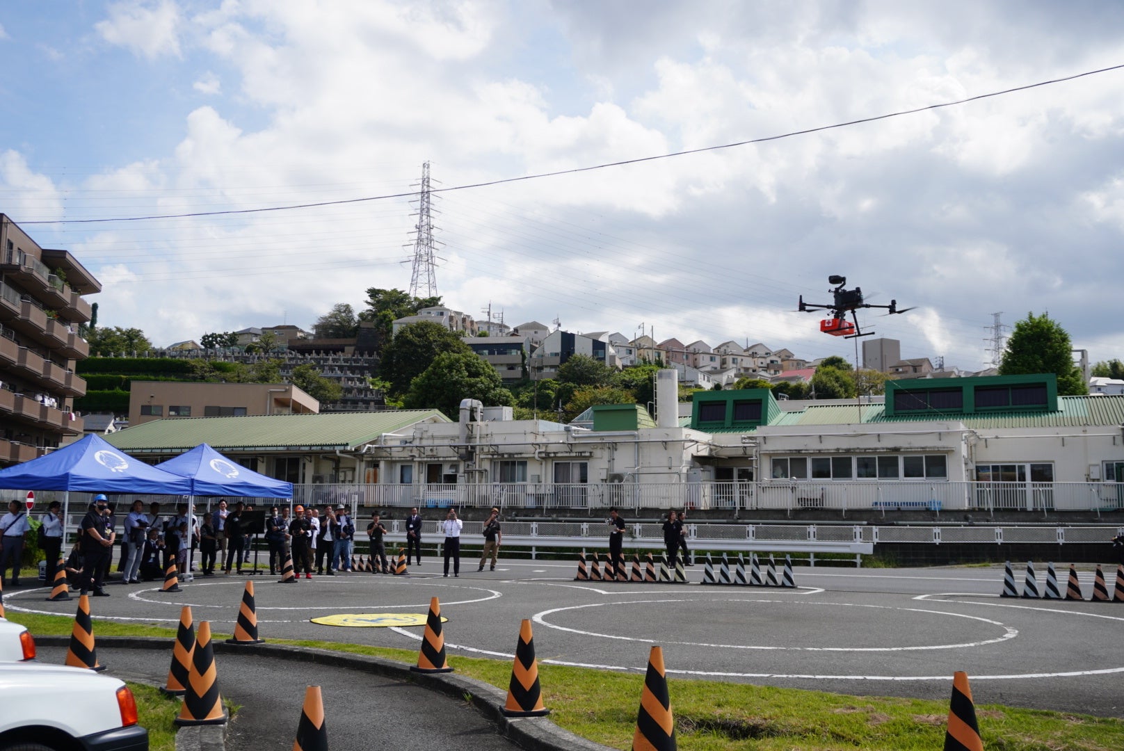 スクールでのドローン操縦体験から産業用ドローンの展示、さらには鴨居自動車学校の校舎屋上から緊急支援物資を届ける飛行デモも行いました!