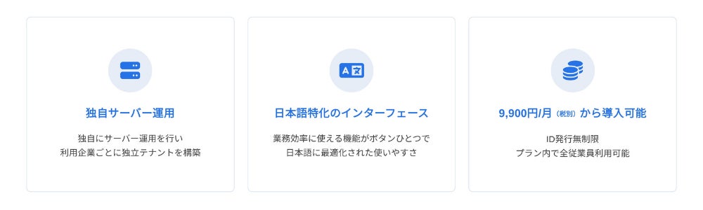 ChatGPTの法人利用において障壁となりがちな「セキュリティ」「活用の定着」「利用コスト」という3大課題を、現場ですぐに成果を出せるかたちで解決した、実践志向のAIソリューションです。