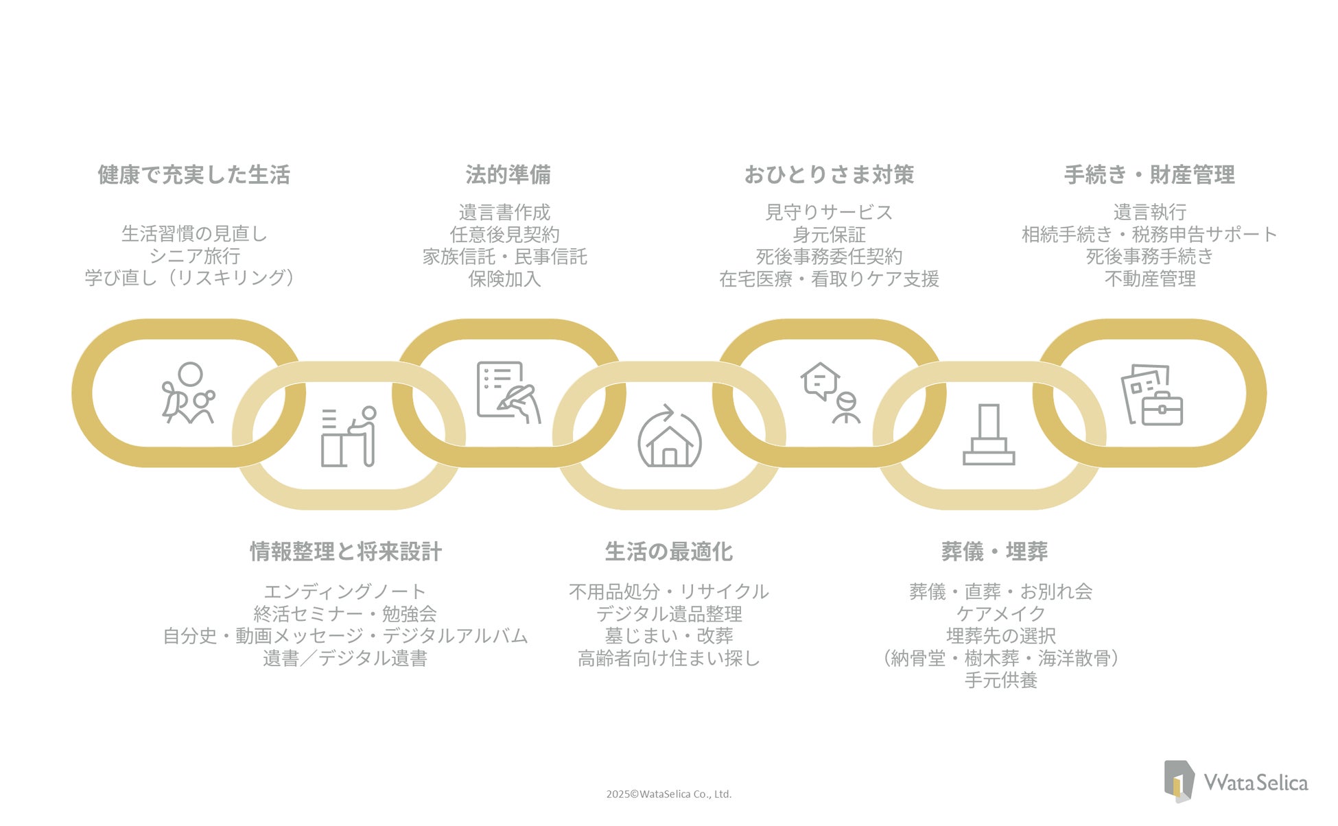 株式会社WataSelica(本社:東京都中央区、代表取締役社長:赤羽 真聡、以下「当社」)は、終活領域のサービスを複数展開する新会社を令和7年7月7日に設立し事業を開始いたしました。終活領域のサービスを総合的に取り扱い、お客様一人ひとりの価値観や想いに寄り添った幅広い選択肢を提供することで、「わたしの世界を、わたしでつくる。」という新たな終活・人生設計のあり方を提唱してまいります。