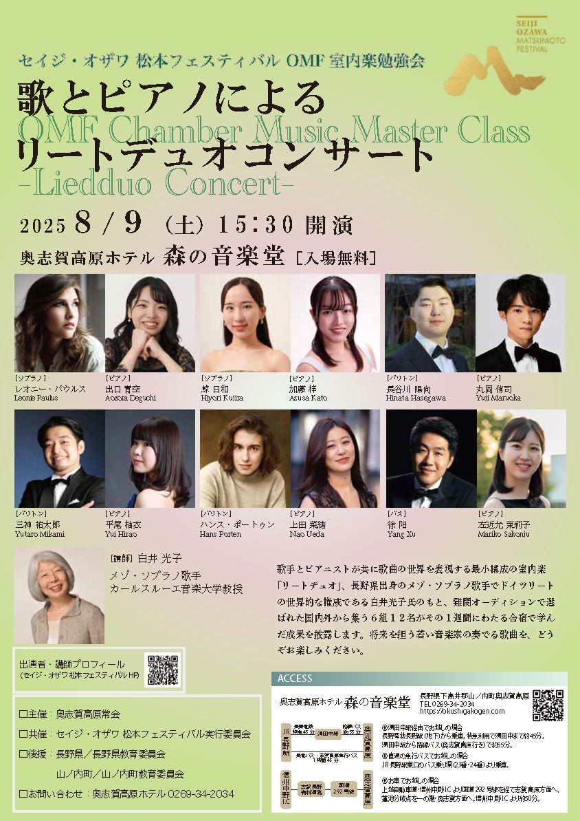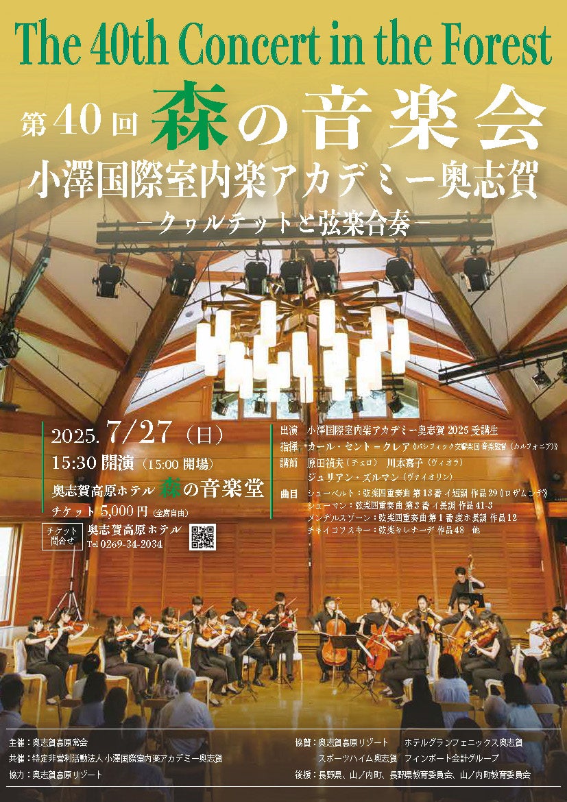 この夏のフェスタを通じて、奥志賀高原は“自然と音楽が一体となる奇跡の舞台”として、クラシック音楽の新たな聖地となることを目指しています。