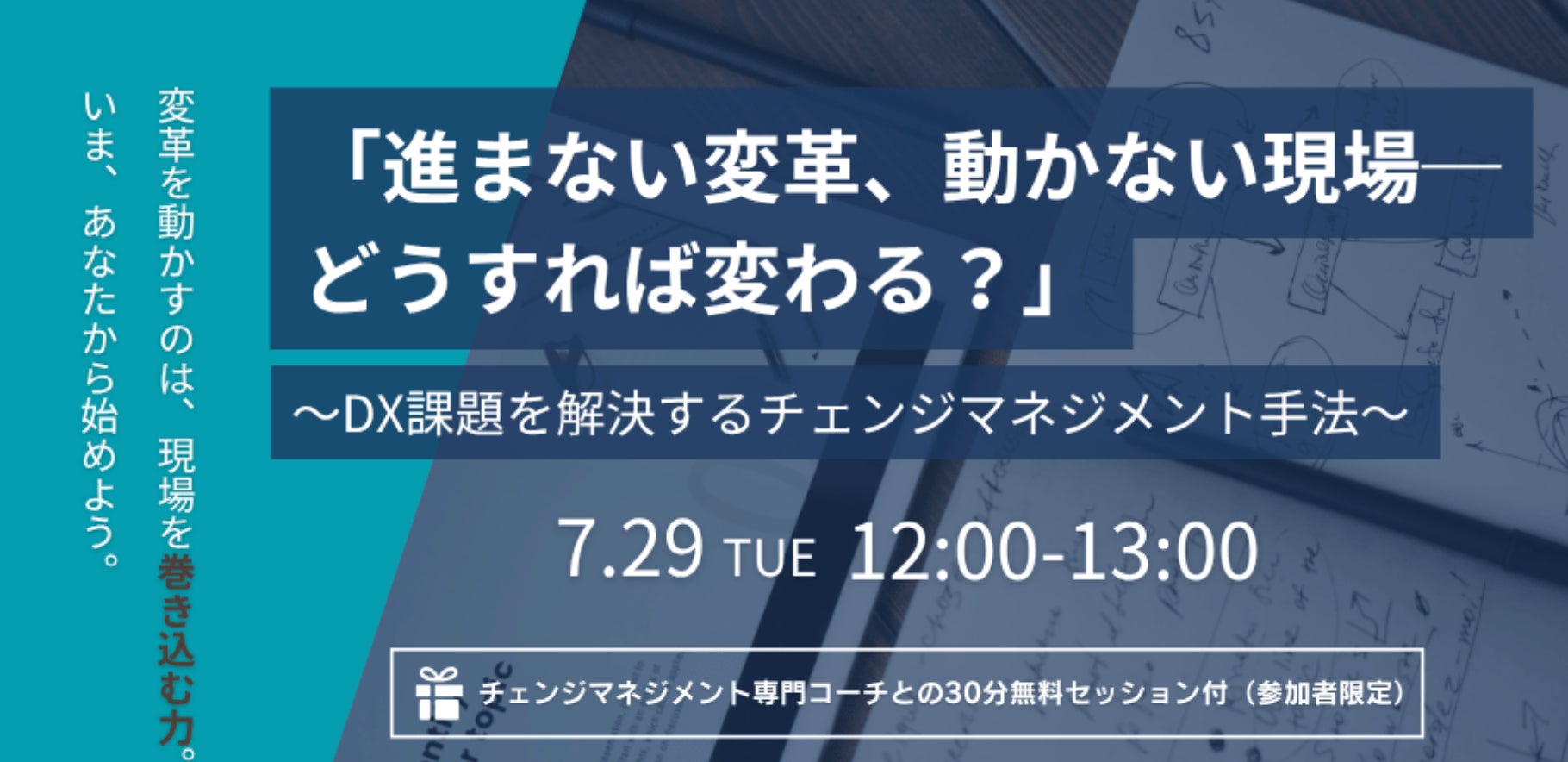 【7/29(火)開催】DX推進者向けウェビナー:「進まない変革、動かない現場ーどうすれば変わる?」DX課題を解決するチェンジマネジメント手法