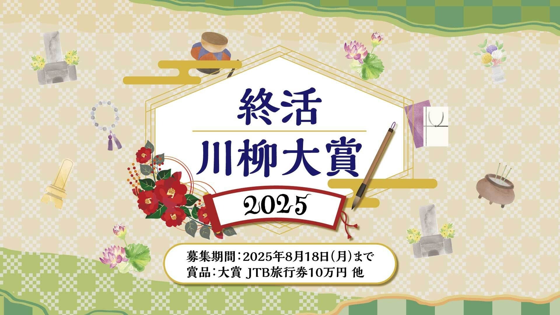 「終活川柳2025」は、身の回りの整理、葬儀やお墓の準備、財産管理など自身の死後を想定して行う様々な準備や、残りの人生をより良く生きるための活動である「終活」をテーマに、皆様の体験や想いを込めた5・7・5の川柳を募集する企画です。受賞作品に選ばれた作者の方には、「JTB旅行券10万円」など、豪華賞品を贈呈いたします。