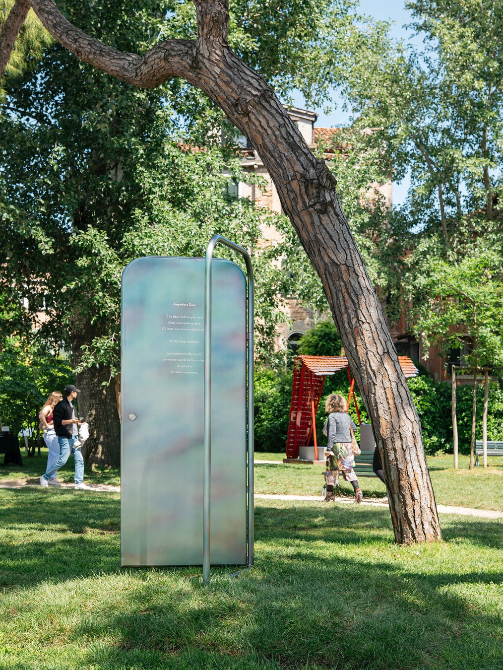 European Cultural Centre から2025年度の Time Space Existence 公式招聘の招聘状を受け取った際に、思い描いたことが2つあります。ひとつが、これまで素晴らしい建築家が展示を行ってきた歴史ある Marinaressa Gardens で建築インスタレーション作品を制作 / 出展することです。ふたつめが、ヴェネチアのみに留まらず、国境を越えて展開する、一連の建築作品、ネットワーク型の建築プロジェクトとして企画 / 製作・プロデュースをすることでした。「世界はつながっている」体感を得られ、繋がりについて今一度考えられる、そんな作品を設計したいと強く思いました。《Anywhere Door》は、本プロジェクトに共感いただいた多くの方々の協力 / 支援によって実現しています。
