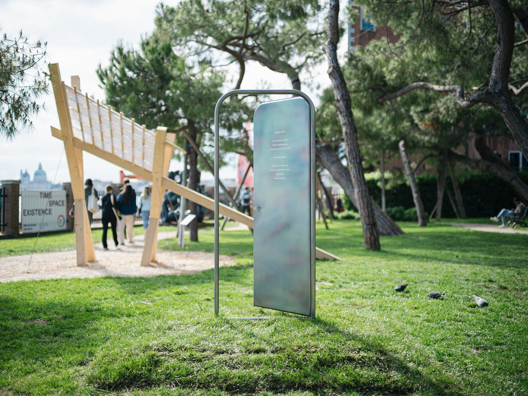 ヴェネチア・ビエンナーレ国際建築展期間中に開催される European Cultural Centre 主催 Time Space Existence の公式招聘作品として、《Anywhere Door》は屋外会場であるマリナレッサ庭園(Marinaressa Gardens)に出展 / 展示されています。「Urgency to Repair, Regenerate, and Reuse」をテーマに掲げた2025年度のTime Space Existence の会場には、2025年5月10日(土)から 2025年11月23日(日)までの198日間、世界各国から招聘された建築家の作品やパネルが並びます。その中で、日本人建築家として、日本の文化と職人の誇るクラフトマンシップを立体作品を通して伝えます。世界の名だたる出展作品と並ぶ《Anywhere Door》。その存在感と日本文化が織りなす表現を現地ヴェネチアでぜひご体感ください。