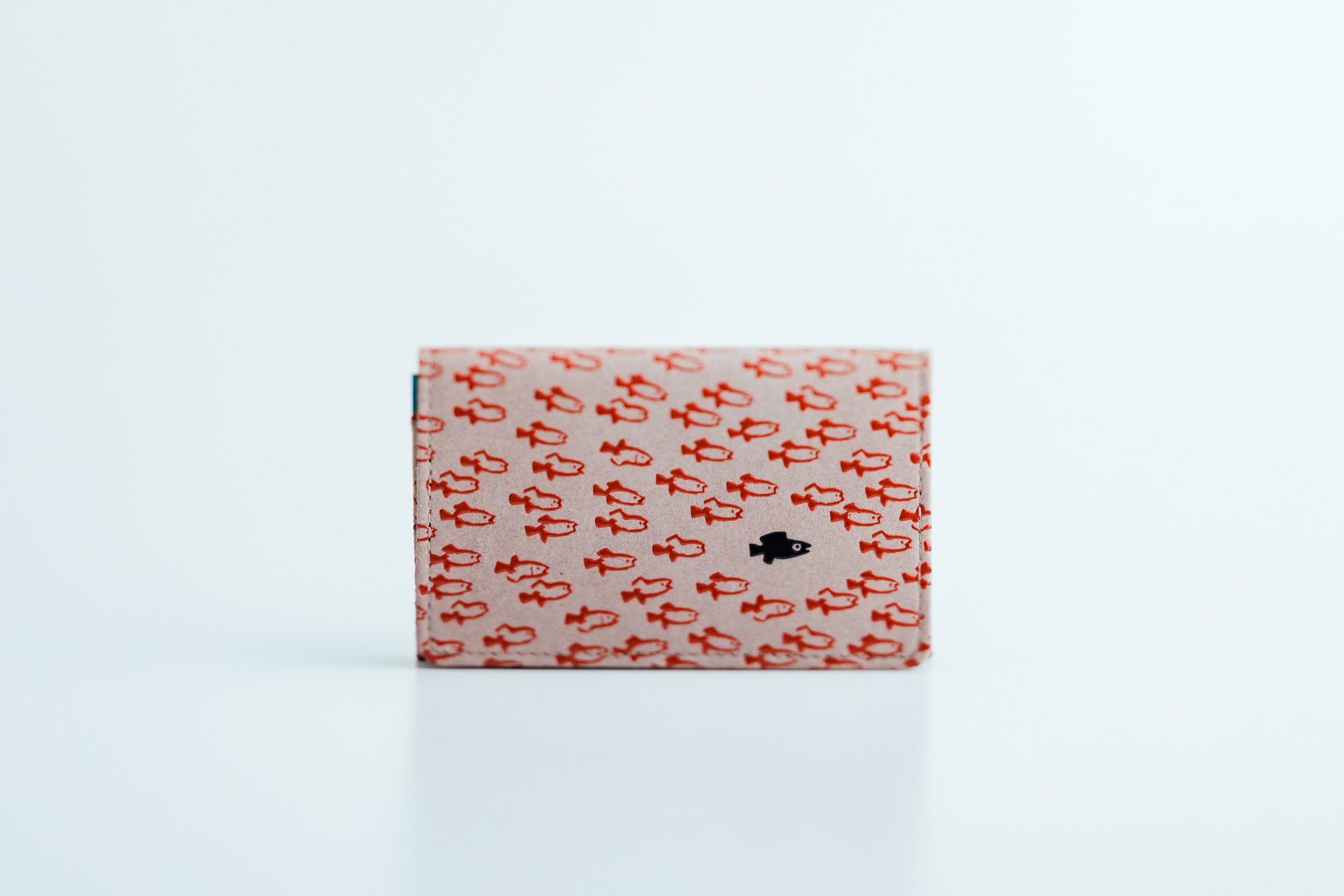 印伝を象徴する漆模様の小さな魚たちは、密度や位置をアイテムごとに変えています。漆ならではの光沢は、小さな魚たちへ艶やかな命を吹き込み、模様へ豊かな表情と生き生きとした力強さを与えています。