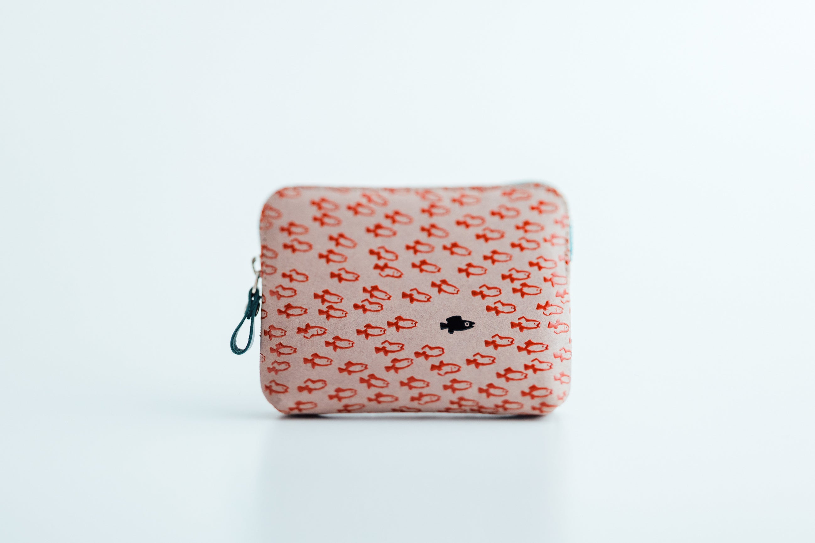 手のひらに収まる、小型ポーチです。中身が取り出しやすい丈夫なラウンドファスナー式。
