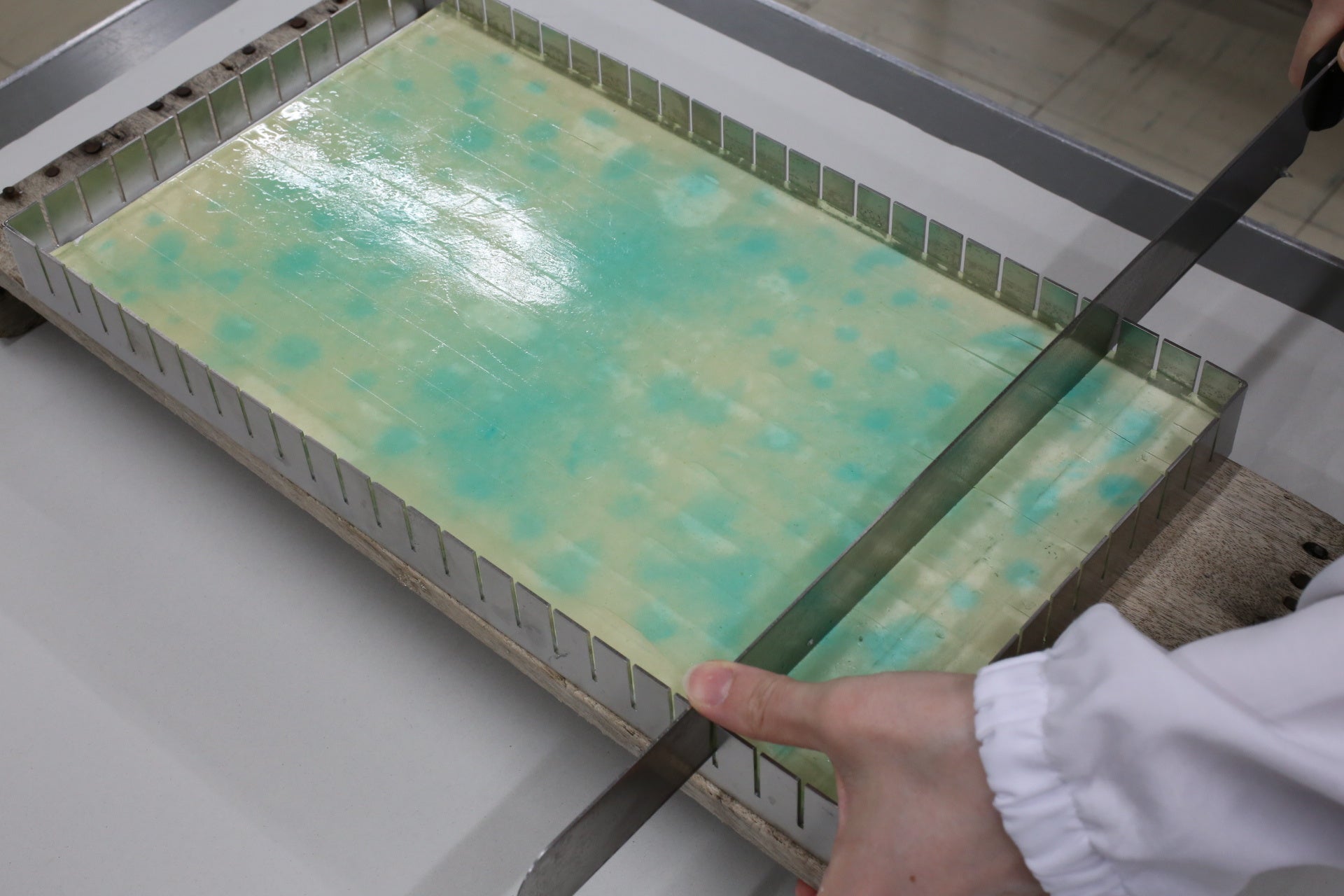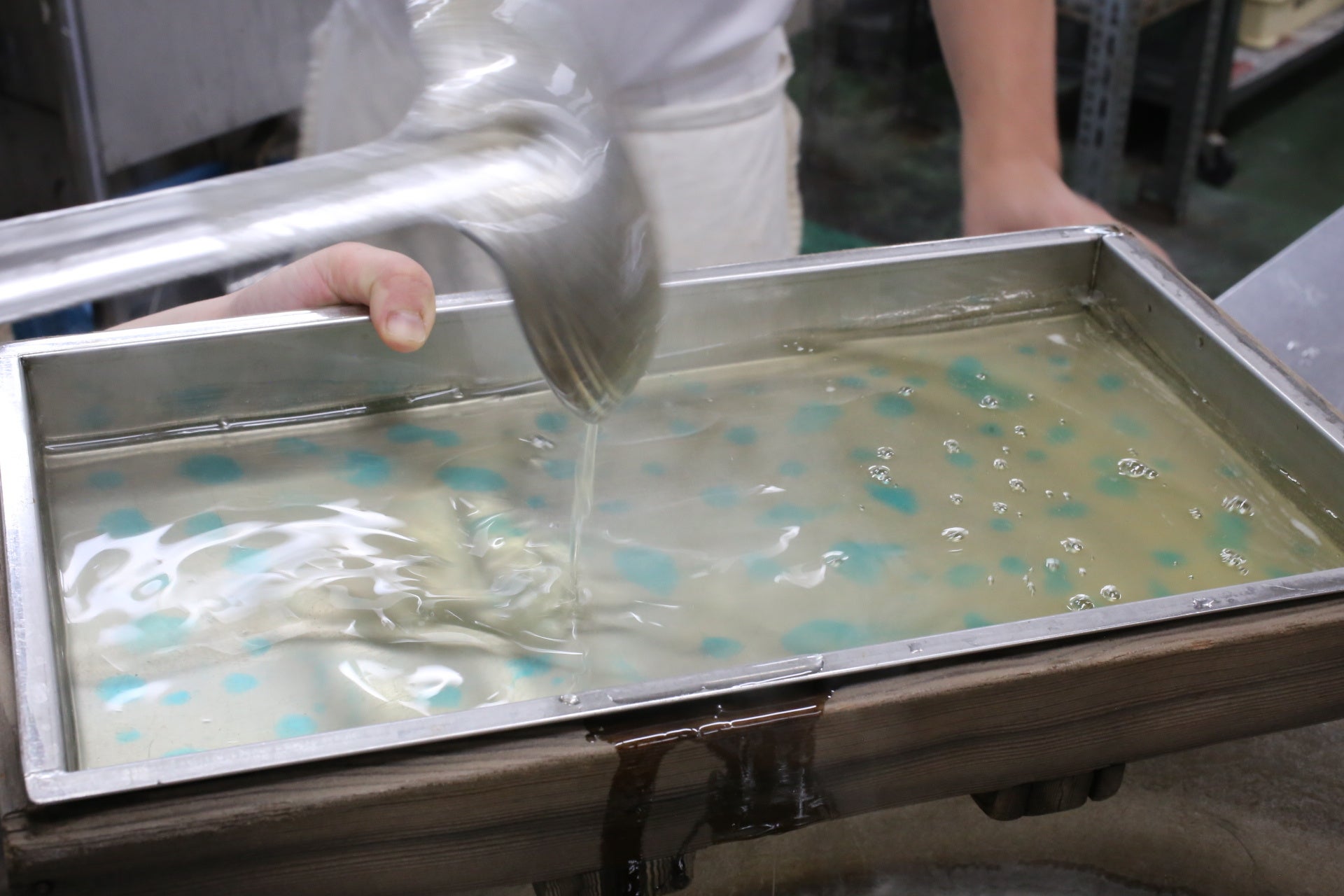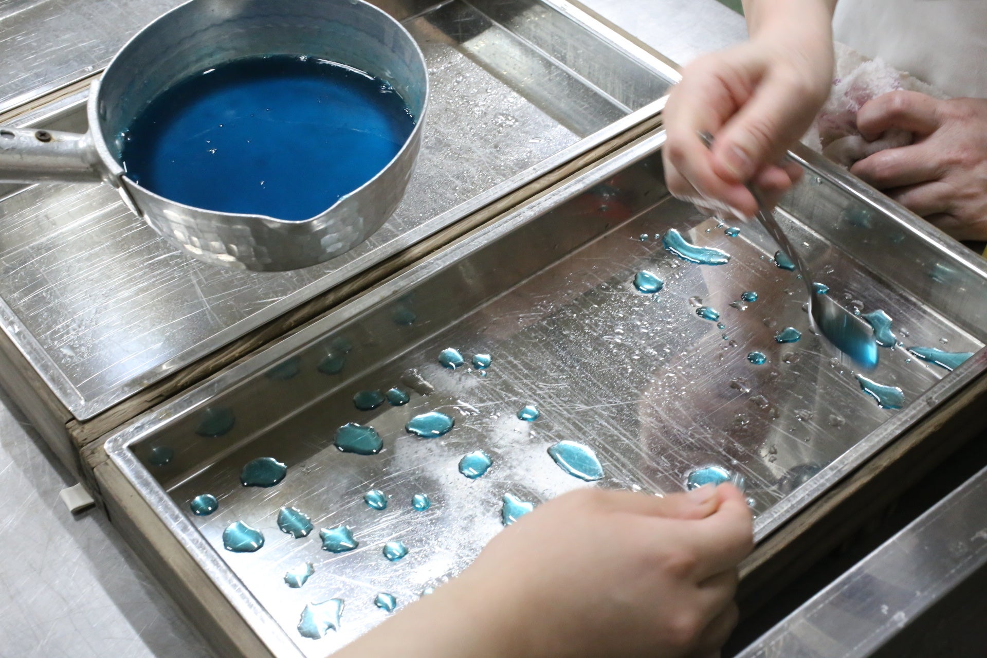 開発にあたって苦労したのは、青色の模様の加減でした。わずかな分量の差で印象が大きく変わるため、何度も試作を重ねて、氷のような美しさを引き出しました。