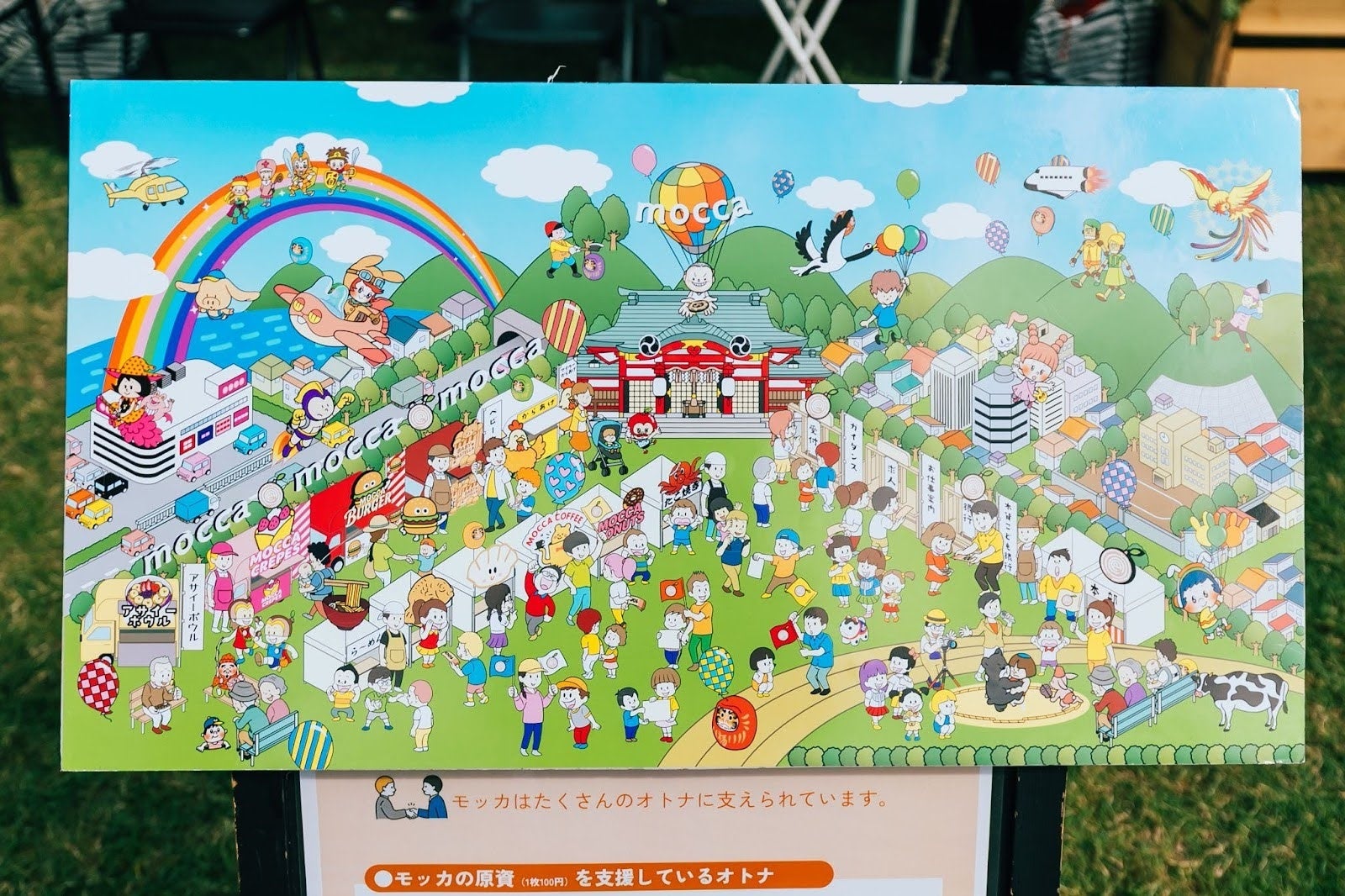 これから、どんどん広がっていく大きなmoccaの地図には、moccaに関わる学生や大人、共創する企業や地域団体など、様々な立場の大人が描かれ子どもたちを支えるように大人たちが取り囲んだ社会を描いていきます。