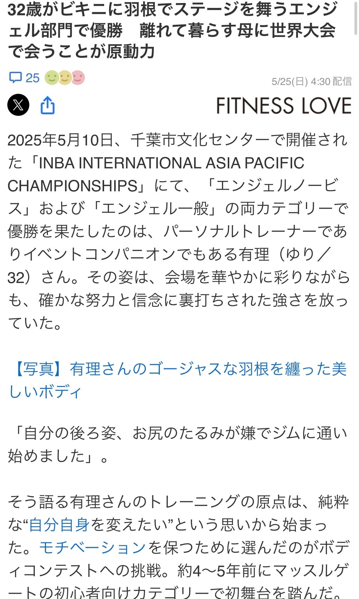 Angelカテゴリーでの優勝は、彼女にとって“私らしさ”を初めて肯定された瞬間だった。